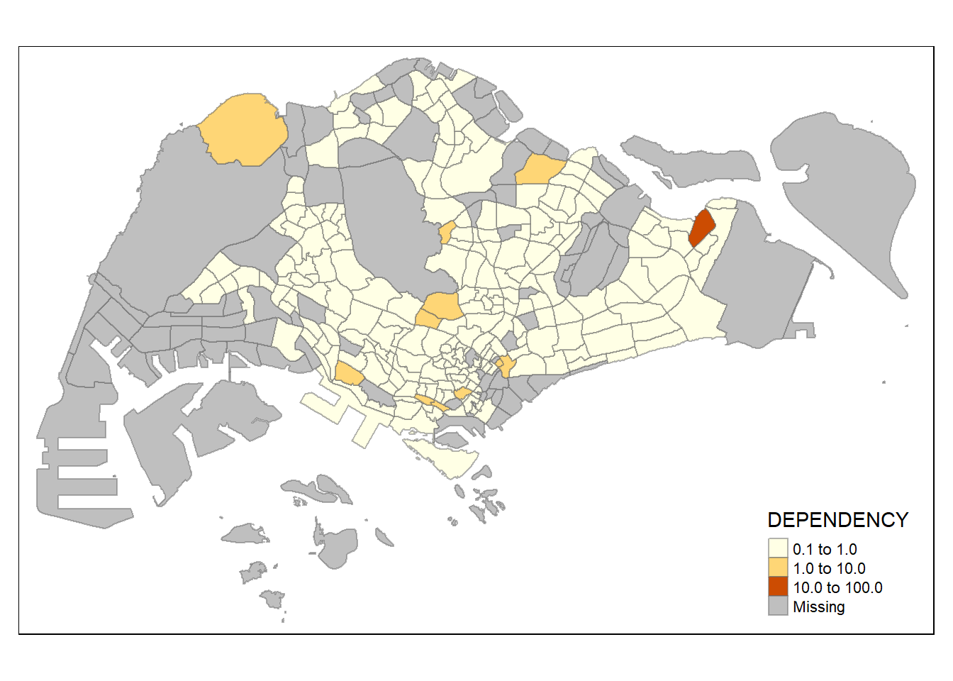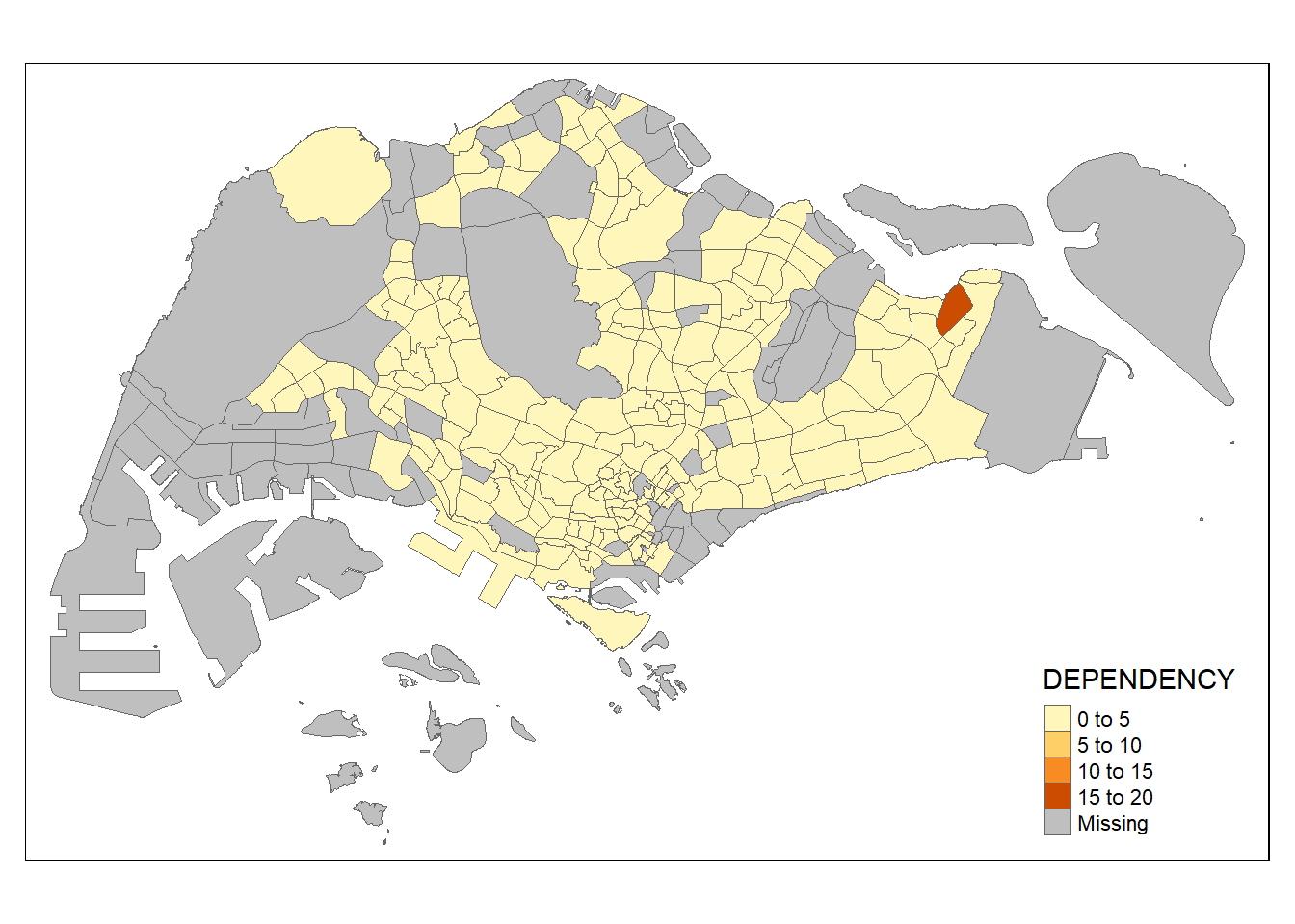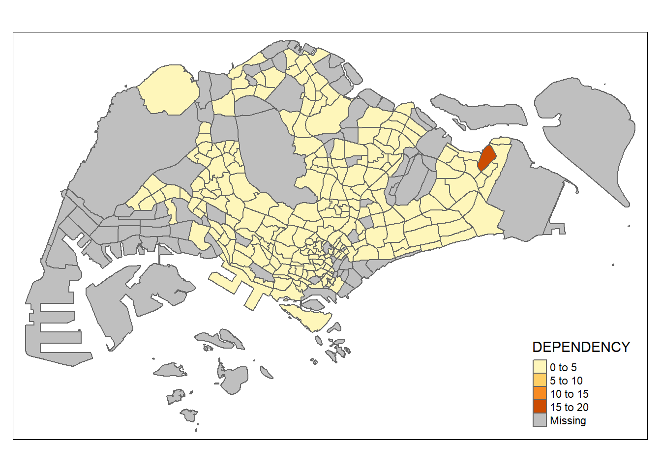 `TOTAL`, `DEPENDENCY`)The values in the “PA” and “SZ” fields are converted to uppercase to facilitate joining later on. This is because the values of the “PA” and “SZ” fields are in uppercase and lowercase , while the “SUBZONE_N” and “PLN_AREA_N” are in uppercase.